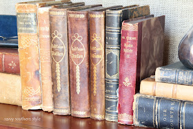 | Antique leather books collected by Kim at Savvy Southern Style |